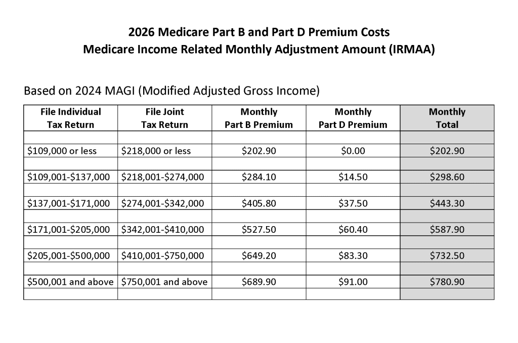 The updated 2026 IRMAA chart is included in this newsletter for your planning discussions.